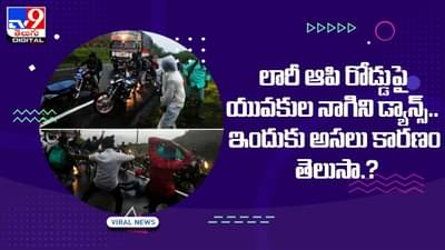 లారీ ఆపి రోడ్డుపై యువకుల నాగిని డ్యాన్స్.. ఇందుకు అసలు కారణం తెలుసా ??