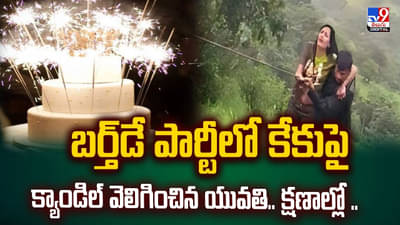 బర్త్డే పార్టీలో కేకుపై క్యాండిల్ వెలిగించిన యువతి.. క్షణాల్లో