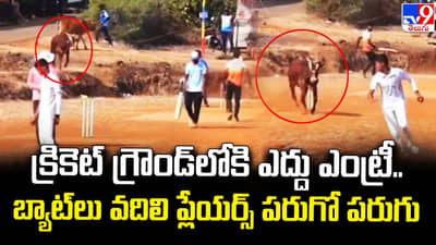 క్రికెట్ గ్రౌండ్లోకి ఎద్దు ఎంట్రీ.. బ్యాట్లు వదిలి ప్లేయర్స్ పరుగో పరుగు