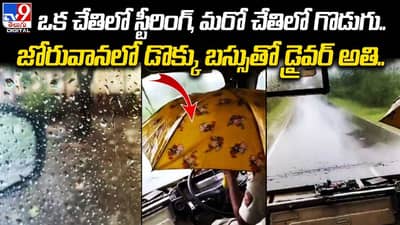 ఒక చేతిలో స్టీరింగ్, మరో చేతిలో గొడుగు.. జోరువానలో డొక్కు బస్సుతో డ్రైవర్ అతి