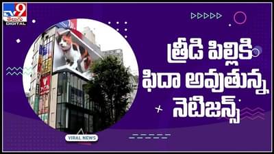 త్రీడీ పిల్లి కి ఫిదా అవుతున్న నెటిజన్స్..! పెద్ద పిల్లి గోడ ఎక్కింది..వైరల్ వీడియో :3D Cat Tokyo Video.