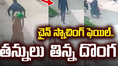 మూతికి మాస్కు పెట్టుకోని బండి నుంచి దిగాడు ఈ కేటుగాడు. తచ్చాడుతూ అక్కడే ఉన్న కిరాణా షాపులోకి వచ్చాడు. ఏదో కొంటున్నట్లు అక్కడికి వెళ్లి.. అక్కడ ఉన్న మహిళ చైన్ తెంపి పారిపోదామకున్నాడు. ఇంతలో అలర్టైన ఆ మహిళ.. వాడిని పట్టుకునేందుకు ప్రయత్నించింది. దీంతో పారిపోబోయి.. అక్కడే ఉన్న కుర్చి తగిలి కిందపడ్డాడు ఆ దొంగోడు. లేచి పారిపోబోతుంటే.. ఆ మహిళ అతడిని వెంటాడింది. అక్కడి స్థానికులు కూడా అలెర్టయి.. ఆ దొంగోడ్ని పట్టుకుని పోలీసులకు అప్పగించారు. హైదరాబాద్ నార్సింగ్ వద్ద ఈ ఘటన వెలుగుచూసింది. ఇన్ స్టంట్ ఖర్మ అంటే ఇదే అని కామెంట్స్ పెడుతున్నారు ఈ వీడియో చూసిన నెటజన్స్.