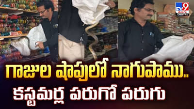 ఇటీవల పాములు ఎక్కడపడితే అక్కడ తిష్టవేస్తున్నాయి. ఇళ్లు , వాహనాలు, దుకాణాలు..ఇలా దేనినీ వదలడంలేదు. చీమలు పుట్టలు పెట్టడం మానేశాయో.. లేక వర్షాలు వరదలకు పుట్టలుకొట్టుకుపోవడంతో పాములకు ఆశ్రయం కరువైందో కానీ ఈ పాములు జనావాసాల్లోకి చేరి తీవ్ర భయాందోళనకు గురిచేస్తున్నాయి. తాజాగా ఓ గాజుల దుకాణంలో చేరిన నాగుపాము అక్కడకు వచ్చిన కస్టమర్స్ను పరుగులు పెట్టించింది.