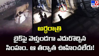 అర్ధరాత్రి బైక్ పై వెళ్తుండగా ఎదురొచ్చిన సింహం.. ఆ తర్వాత ఊహించలేరు