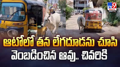 ఆటోలో తన లేగదూడను చూసి వెంబడించిన ఆవు.. చివరికి