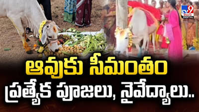ఆవుకు సీమంతం.. ప్రత్యేక పూజలు, నైవేద్యాలు..