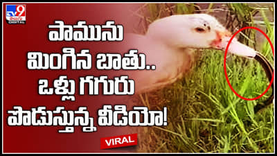 సోషల్ మీడియాలో నిత్యం రకరకాల వీడియోలు వైరల్ అవుతుంటాయి. కొన్ని ఆశ్చర్యపరిచేలా ఉంటే.. మరికొన్ని ఆసక్తి కలిగిస్తుంటాయి. మరికొన్ని నవ్వుల పువ్వులు పూయిస్తుంటాయి. ముఖ్యంగా సోషల్ మీడియాలో పాములకు సంబంధించిన వీడియోలు ఇంకా వైరల్ అవుతుంటాయి. తాజాగా పామును బాతు అమాంతం మింగేసిన వీడియో వైరల్గా మారింది. ఓ చిన్న బాతు పిల్ల కాలువ ఒడ్డున పచ్చ గడ్డిలో పురుగులు, కీటకాల కోసం వెతుకుతుంది. అప్పుడే ఆ బాతుకు ఓ ప్రమాదకరమైన పాము కనిపించింది. వెంటనే పామును బాతు నోటితో ఒడిసిపట్టి.. కొద్ది కొద్దిగా చూస్తుండగానే అమాంతం మింగేసింది. పాము బాతుబారి నుంచి తప్పించుకునేందుకు ప్రయత్నించినా ఫలితం లేకుండాపోయింది. ఒళ్లు గగుర్పాటుకు గురి చేస్తున్న ఈ వీడియో ప్రస్తుతం నెట్టింట వైరల్గా మారింది.