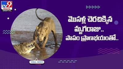 Viral Video: మొసళ్ల చెరచిక్కిన మృగరాజు..పాపం ప్రాణభయంతో
