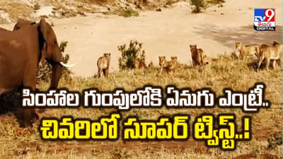 సింహాల గుంపులోకి ఏనుగు ఎంట్రీ.. చివరిలో సూపర్ ట్విస్ట్