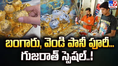 పానీ పూరి.. అనే పదం వింటేనే చాలా మందికి నోరూరిపోతుంది. పానీ పూరిని గోల్ గప్పా, గప్ చుప్ అని కూడా పిలుస్తారు. మీరు చాలా రకాల పానీ పూరీలను తిని ఉంటారు. ఎప్పుడైనా బంగారం, వెండి పానీ పూరీలను తిన్నారా? మీరు విన్నది నిజమే.. బంగారు, వెండి పానీపూరీలే. గుజరాత్లోని అహ్మదాబాద్కు చెందిన ఓ విక్రేత పానీ పూరీలో కొత్త వెర్షన్ను కనుగొన్నారు. ఈ పానీ పూరీపై బంగారు, వెండి పూతతో అలంకరించి, బంగారు ప్లేట్లోనే సర్వ్ చేస్తున్నారు.