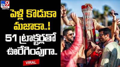 మన జీవితంలో ఒక మంచి జ్ఞాపకం పెళ్లి కావడం వల్ల ప్రత్యేకంగా మార్చుకోవడానికి ప్రతి ఒక్కరు కూడా కొత్తగా ఆలోచిస్తుంటారు. రాజస్థాన్లోని బార్మర్లో జరిగిన ఒక వివాహ ఊరేగింపు ఎంతో ప్రత్యేకంగా నిలిచింది. విషయం ఏంటంటే.. 51 ట్రాక్టర్లలో పెళ్లి ఊరేగింపు బయల్దేరింది. అందులో ఒకటి వరుడు స్వయంగా నడుపుతూ వచ్చాడు. గూడమలాని గ్రామానికి చెందిన ప్రకాష్ చౌదరికి రోలి గ్రామానికి చెందిన మమతతో వివాహమైంది. జూన్ 12న ఉదయం వరుడి ఇంటి నుంచి 51 కిలోమీటర్ల దూరంలోని రోలి గ్రామానికి ఊరేగింపు బయలుదేరింది. 51 ట్రాక్టర్లలో 200 మందికి పైగా పాల్గొన్నారు. ఎక్కువ మొత్తంలో ట్రాక్టర్లు క్యూలో ఉండడంతో అక్కడ ఉన్న స్థానికులు ఆశ్చర్యానికి గురయ్యారు. ఈ పెళ్లి వేడుకకు వీడియో ప్రస్తుతం సోషల్ మీడియాలో వైరల్గా మారింది.