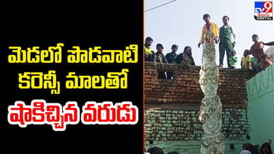 వివాహం జీవితంలో ఒక్కసారే వచ్చే మధుర ఘట్టం. అందుకే గుర్తుండిపోయేలా అట్టహాసంగా పెళ్లి తంతు జరుపుకోవాలని ప్రతి ఒక్కరూ కలలు కంటారు. పేదవాడు తన స్థోమతకు తగ్గట్టు ఏర్పాట్లు చేసుకుంటే ధనవంతులు మాత్రం అందరూ చర్చించుకునేలా అట్టహాసంగా జరుపుకుంటారు. ఈ మధ్యకాలంలో చాలామంది ఇలా పోటీలు పడి మరీ పెళ్లిళ్లకు ఖర్చు పెట్టడం చూస్తున్నాం. తాజాగా కరెన్సీ నోట్లతో తయారు చేసిన అతి పెద్ద దండను ఒక వరుడు మెడలో ధరించిన వీడియో వైరల్ అవుతోంది.