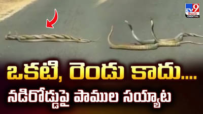 పాముల వీడియోలు అనేకం సోషల్ మీడియాలో నిత్యం వైరల్ గా మారుతుంటాయి. తాజాగా అలాంటి వీడియో ఒకటి అందరినీ షాక్ అయ్యేలా చేసింది. నడి రోడ్డు మీద మూడు పాములు సయ్యాట లాడుతూ హల్ చల్ చేశాయి. ఒకదానికి మరోకటి చుట్టుకుని రోడ్డుపై నాట్యం చేస్తుండగా, చుట్టూ ఉన్న జనాలు ఆశ్చర్యంగా చూస్తూ ఉండిపోయారు.