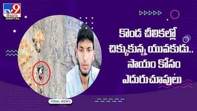 కొండ చీలికల్లో చిక్కుకున్న యువకుడు !! చివరకు ?? వీడియో