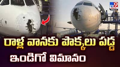 రాళ్ల వానకు బొక్కలు పడ్డ ఇండిగో విమానం వీడియో