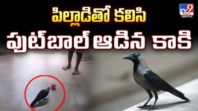 పిల్లాడితో కలిసి ఫుట్బాల్ ఆడిన కాకి.. వీడియో వైరల్
