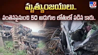 మృత్యుంజయులు.. వంతెనపైనుంచి 50 అడుగుల లోతులో పడిన కారు