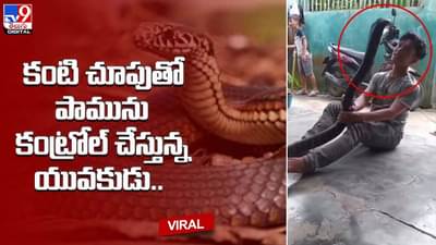 కంటి చూపుతో పామును కంట్రోల్ చేస్తున్న యువకుడు.. యువకుడి కళ్లలోకి చూస్తూ కింగ్ కోబ్రా డాన్స్