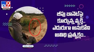 జీపు బానెట్ పై కూర్చున్న వ్యక్తి !! ఎదురుగా అనుకోని అతిథి ప్రత్యక్షం !!