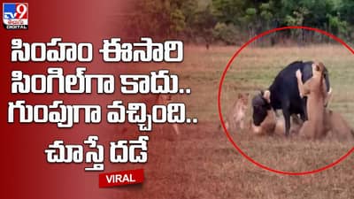 సాధారణంగా సింహం ఎక్కడ కనిపించినా అడవిలోని జంతువులన్నీ వేగంగా, దూరంగా పారిపోతాయి. వాటి చేతికి చిక్కి చనిపోవాలని ఏ జంతువూ అనుకోదు. ఎందుకంటే దాని కంట పడితే ప్రాణాలు హరీ అనడం ఖాయం. ఈ వైరల్ వీడియోలోనూ అలాంటి దృశ్యమే కనిపిస్తోంది. సింహాల గుంపు కలిసి ఓ గేదెను వేటాడుతుంది. వాటి బారి నుంచి తప్పించుకోవడానికి గేదె ప్రయత్నించినప్పిటికీ అది సాధ్యం కాలేదు. దీంతో అది వాటికి ఆహారంగా మారక తప్పలేదు. వైరల్ అవుతున్న వీడియోలో సింహాల గుంపు గేదెను చూసి ఒక్కసారిగా ఎటాక్ చేసాయి. వాటికి దీటుగా గేదె కూడా రివర్స్ ఎటాక్ చేసింది. కానీ అది ఒంటరిగా ఉండిపోవడం, సింహాల సంఖ్య ఎక్కువగా ఉండటంతో పాపం ఆ గేదె వాటినుంచి తప్పించుకోలేకపోయింది. వాటికి ఆహారమైపోయింది. నెట్టింట వైరల్ అవుతున్న ఈ వీడియోను వేలమంది వీక్షించారు. ఈ వీడియో చూసి యూజర్లు ఆశ్చర్యపోతున్నారు. ఈ ఘటన చాలా బాధాకరమని కామెంట్లు చేస్తున్నారు.