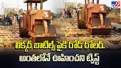 లిక్కర్ బాటిల్స్ పైకి రోడ్ రోలర్.. అంతలోనే ఊహించని ట్విస్ట్