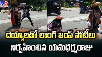 అదేదో సినిమాలో చూపించినట్లు యమలోకంలో ఉండాల్సిన యమధర్మరాజు చిత్రగుప్తునితో సహా భూలోకంలో ప్రత్యక్షమైతే ఎలా ఉంటుంది? యముండా అంటూ మనుషుల ప్రాణాలను పల్లీల పొట్టులెక్క ఊదేసే యముడు భూమిమీద సందడి చేస్తే ఎలా ఉంటుంది. చిత్రగుప్తుడు చిట్టా విప్పుతుండగా మానువుల పాపపుణ్యాలను బేరీజు వేస్తూ శిక్షలు విధించే నరకలోకాధిపతి భూలోకంలో స్పోర్ట్స్ కండక్ట్ చేస్తే ఎలా ఉంటుంది? ఏంటి ఈ సినిమా స్టోరీ అనుకుంటున్నారా? కాదండి బాబూ అక్కడ నిజంగానే యముడు ప్రత్యక్షమయ్యాడు. అంతేకాదు లాంగ్జంప్ స్పోర్ట్స్ కూడా కండక్ట్ చేశాడు. వినడానికి వింతగానే ఉన్నా చెప్పడానికీ ఆశ్చర్యంగానే ఉంది. రోడ్డుమీద ప్రత్యక్షంగా యముడిని చూసినవారంతా మనం ఎక్కడున్నాం భూమి మీదే ఉన్నామా లేక యమలోకానికి గిన వచ్చామా అని ఫీలయ్యారట. ఈ విచిత్ర దృశ్యం కర్ణాటకలో చోటు చేసుకుంది. కర్ణాటకలోని ఉడిపీని, ప్రసిద్ధ మల్పే బీచ్ను కలిపే ఆది ఉడిపి-మల్పే రహదారి గుంతలమయంగా మారింది. దీంతో నిత్యం రోడ్డు ప్రమాదాలు జరగడంతోపాటు వాహనదారులు ఇబ్బందులు పడుతున్నారు. ఆ రహదారిపై తరచుగా రోడ్డు ప్రమాదాలు జరగడంతో పలువురు గాయపడగా కొందరు మరణించారు. ఈ నేపథ్యంలో కొందరు వ్యక్తులు వినూత్నంగా నిరసన చేపట్టారు. ఆ గుంతల రోడ్డుపై యముడు లాంగ్ జంప్ పోటీలు నిర్వహించాడు. ఈ వీడియో సోషల్ మీడియాలో వైరల్ అయ్యింది.