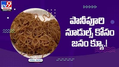 ఇటీవల సోషల్ మీడియాలో ఫుడ్ వీడియోస్ ఎక్కువగా వైరల్ అవుతున్నాయి. కొత్త కొత్తగా వంటలను ట్రై చేస్తున్న వీడియోలు రోజూ చూస్తూనే ఉంటాం. ఇక పానీపూరితో చేసే ప్రయోగాల గురించి చెప్పాల్సిన పనిలేదు. ఫైర్ పానీపూరి.. శాండ్ విచ్ పానీపూరి, బర్గర్ పానీపూరి ఇలా ఒక్కటేమిటీ అనేక రకాల వీడియోస్ వందల కొద్ది నెట్టింట్లో వైరల్ అవుతుంది. తాజాగా పానీపూరితో చేసిన నూడుల్స్ వంటకానికి సంబంధించిన వీడియో ఇప్పుడు సోషల్ మీడియాలో వైరల్ అవుతుంది. ఇది టేస్ట్ చేసేందుకు జనం క్యూ కట్టారు.