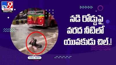 Viral Video: నడి రోడ్డుపై వరద నీటిలో యువకుడు చిల్.. వీడియో చూశారంటే నవ్వకుండ ఉండలేరు..