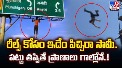 సోషల్ మీడియా విస్తృతి పెరిగిన తర్వాత ప్రతీ ఒక్కరికీ రీల్స్ పిచ్చి పెరిగిపోయింది. సోషల్ మీడియాలో పాపులర్ అవ్వాలని ప్రాణాలకు సైతం తెగించి రీల్స్ చేస్తున్నారు. లైక్స్ కోసం లైఫ్ని రిస్క్లో పడేసుకుంటున్నారు. అలాంటి ఘటనే ఒకటి ఉత్తరప్రదేశ్లో చోటుచేసుకుంది. ఓ యువకుడు రోడ్డుమీద ఉండే సైన్ బోర్డు పైకి ఎక్కి పులప్స్ చేశాడు. ప్రస్తుతం ఈ వీడియో సోషల్ మీడియాలో వైరల్ అవుతోంది. ఈ వీడియో చూసిన నెటిజన్లు రకరకాలుగా స్పందిస్తున్నారు. అమేదీ లోని జాతీయ రహదారిపై ఓ యువకుడు రోడ్డుపై ఉండే సైన్బోర్డు పైకి ఎక్కి పులప్స్ చేశాడు. నేల నుంచి 10 మీటర్లకు పైగా ఎత్తులో వేలాడుతూ స్టంట్లు చేశాడు. మరో యువకుడు కూడా పైకి ఎక్కి అతడి వీడియో తీశాడు. ఏ మాత్రం పట్టు జారినా ప్రాణాలు ప్రమాదంలో పడేవి. సోషల్ మీడియాలో వైరల్ అవుతున్న ఈ వీడియోపై నెటిజన్లు భిన్నరకాలుగా స్పందించారు. ప్రాణాలు చాలా విలువైనవి. రీల్స్ కోసం ఇలా తెగించడం సరికాదు అని ఒకరు.. ‘‘రీల్స్ కోసం ప్రమాదకర స్టంట్లు చేస్తూ ప్రాణాలు కోల్పోయిన ఘటనలు చూసినా.. కొందరిలో మాత్రం మార్పు రావడం లేదని మరొకరు..