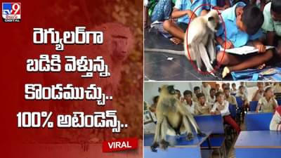 క్రమం తప్పకుండా స్కూలుకి వెళ్తున్న కొండముచ్చు.. 100 % అటెండెన్స్ !!