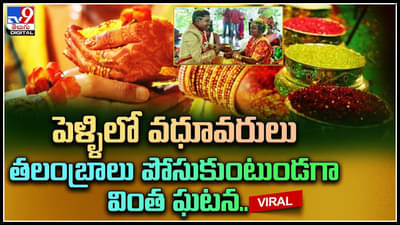 ఈ వీడియోలో తాజాగా ఓ వివాహ వేదికపై వధూవరులు తలంబ్రాలు పోసుకునే తంతు జరుగుతోంది. ఆసమయంలో ఎవరూ ఊహించని సంఘటన ఒకటి జరిగింది. అది అందరినీ ఆశ్చర్యంలో ముంచెత్తింది. వధూవరులు ఎంతో సంతోషంగా పోటపడి మరీ తలంబ్రాలు పోసుకుంటున్నారు. వారి సరదాని చూసి ఆ భగవంతుడు కూడా ముచ్చటపడినట్టున్నాడు. వానర రూపంలో వచ్చి వారిని ఆశీర్వదించి వెళ్లాడు. అవును.. ఎక్కడినుంచి వచ్చిందో ఓ వానరం అకస్మాత్త్గుగా వధూవరుల మీదకు ఉరికింది. మొదట వరుడి భుజాలపై కూర్చుని ఆశీర్వదించింది. అనంతరం వధువును కూడా ఆశీర్వదించి, పనిలో పనిగా వారి తలపై ఉన్న జీలకర్ర,బెల్లం పట్టుకొని తుర్రుమంది. ప్రస్తుతం ఈ వీడియో నెట్టింట నవ్వులు పూయిస్తోంది. అయితే ఈ ఘటన ఎప్పుడు ఎక్కడ జరిగిందనేది క్లారిటీ లేదు.