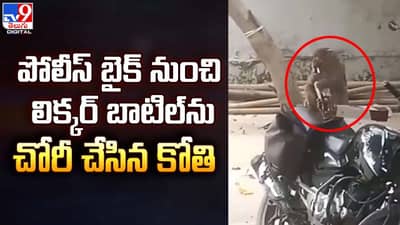 పోలీస్ బైక్ నుంచి లిక్కర్ బాటిల్ ను చోరీ చేసిన కోతి