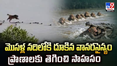మొసళ్ల నదిలోకి దూకిన వానరసైన్యం ప్రాణాలకు తెగించి సాహసం