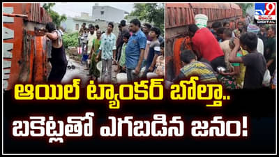 Oil Tank: ఆయిల్ ట్యాంకర్ బోల్తా.. బకెట్లతో ఎగబడిన జనం.!