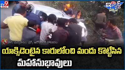 యాక్సిడెంటైన కారులోంచి మందు కొట్టేసిన మహానుభావులు