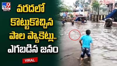 వరదలో కొట్టుకొచ్చిన పాల ప్యాకెట్లు.. ఎగబడిన జనం
