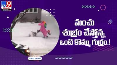 కొంతమంది తాను చేసే పనిలో సంతోషాన్ని వెదుకుకుంటారు. మరి కొందరి తాను చేసే పనిని ఇష్టపడటమే కాదు.. తన సంతోషంతో పాటు.. ఇతరులను కూడా సంతోష పెడుతుంటారు. తాజాగా ఓ వ్యక్తి రోడ్డు మీద కురుస్తున్న మంచుని క్లియర్ చేస్తున్నాడు. అయితే అతను మంచు క్లియర్ చేస్తున్న సమయంలో పింక్ కలర్ ఒంటి కొమ్ము గుర్రం దుస్తులను ధరించాడు. ఈ వీడియో ఇంటర్నెట్లో తెగ వైరల్ అవుతుంది.