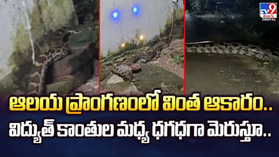 అలా విద్యుత్ దీపాలతో వెలిగిపోతున్న ఓ శివాలయం ప్రాంగణంలోకి చొరబడింది కొండచిలువ.కొమురం భీం జిల్లా కౌటాల మండలంలోని పాత శివాలయం సమీపంలో భారీ కొండచిలువ కలకలం రేపింది. దాదాపు మూడు మీటర్ల పైనే పొడవున్న ఆ కొండ చిలువ ఆలయం వెనుక ప్రహరీ గోడ పక్కనుంచి జరజరా పాకుతూ వెళ్తుండగా స్థానికులు గమనించారు. అంత పెద్ద పామును చూసి భయంతో పరుగులు తీశారు. అనంతరం స్నేక్ క్యాచర్కు సమాచారమివ్వడంతో అక్కడికి చేరుకొని పామును బంధించారు. దాంతో అందరూ ఊపిరి పీల్చుకున్నారు. విద్యుత్ దీపాల వెలుగులో ధగధగా మెరుస్తున్న కొండచిలువ వీడియో సోషల్ మీడియాలో వైరల్గా మారింది.