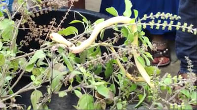 Andhra News: ఇంట్లోని తులసి మొక్కపై అరుదైన పాము.. 2 రోజులుగా అక్కడే