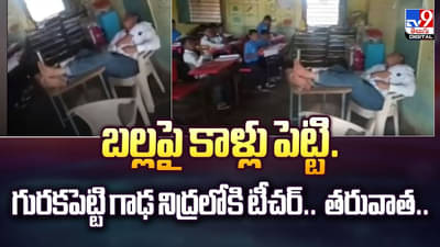 బల్లపై కాళ్లు పెట్టి..గురకపెట్టి గాఢ నిద్రలోకి టీచర్.. తరువాత..వీడియో