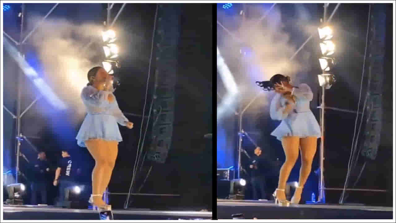 వైరల్ వీడియోలో ఒక మహిళా గాయని వేదికపై పాడుతున్నట్లు చూడవచ్చు. ఆమె తన ప్రదర్శనలో మునిగిపోయింది. అక్కడక్కడ కెమెరాలు అమర్చబడి ఉన్నాయి. అలాగే మొత్తం ఈవెంట్ను చిత్రీకరించడానికి పై నుండి డ్రోన్లు ఎగురుతూ ఉన్నాయి. కానీ చాలా వేగంగా ఎగురుతున్న డ్రోన్ నేరుగా గాయని తలపై ఢీకొంటుంది. ఢీకొన్న తర్వాత డ్రోన్ గాయని జుట్టులో బాగా ఇరుక్కుపోతుంది.