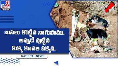 బుసలు కొట్టిన నాగుపాము.. అప్పుడే పుట్టిన కుక్క కూనల పక్కన..