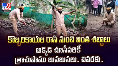 కొబ్బరికాయల రాసి నుంచి వింత శబ్దాలు.. అక్కడ చూసేసరికీ త్రాచుపాము బుసబుసలు.. చివరకు
