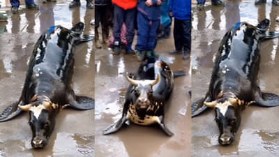 సముద్రతీరానికి వింత జంతువు కొట్టుకొచ్చింది అంటూ ఓ వీడియో నెట్టింట వైరల్ అవుతోంది. అయితే ఆ జీవి రూపం మాత్రం విచిత్రంగా ఉంది. ముఖం ఆవును పోలి ఉంది. కొమ్ములు కూడా ఉన్నాయి. అయితే మిగిలిన శరీరం అంతా డాల్ఫిన్లా ఉంది.