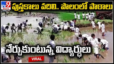 Students in farm: పుస్తకాలు వదిలి.. పొలంలో పాఠాలు నేర్చుకుంటున్న విద్యార్ధులు