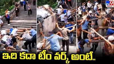 టెక్నాలజీ అందుబాటులోకి వచ్చాక చాలా కష్టమైన పనులు సైతం సులభం అయిపోయాయి. అయితే అన్ని పనులూ టెక్నాలజీతో చెయ్యలేరు. కొన్నింటిని తమ తెలివితేటలు, బలాన్ని ఉపయోగించి మనుషులే చేయాల్సి ఉంటుంది. కొందరు వ్యక్తులు కలిసి ఐకమత్యంతో వర్క్ చేయాల్సి ఉంటుంది. దాని ఫలితం కూడా అద్భుతంగా ఉంటుంది. అలాంటి వీడియో ఒకటి ప్రస్తుతం సోషల్ మీడియాలో వైరల్ అవుతోంది. ఈ వీడియో చూస్తే టీం వర్క్ అంటే ఏమిటో అర్ధమవుతుంది.