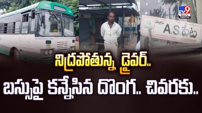 నిద్రపోతున్న డ్రైవర్..బస్సుపై కన్నేసిన దొంగ.. చివరకు వీడియో
