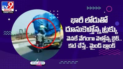 భారీ లోడుతో దూసుకెళ్తోన్న ట్రక్కు వెనకే వేగంగా వెళ్తోన్న బైక్.. కట్ చేస్తే.. మైండ్ బ్లాంక్