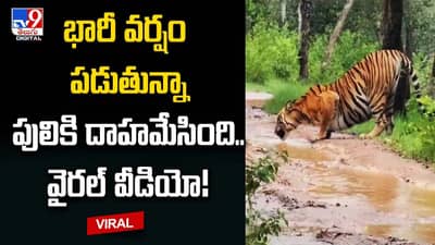 భారీ వర్షంలో నీరు తాగుతున్న పులి.. సోషల్మీడియాలో వైరల్గా వీడియో