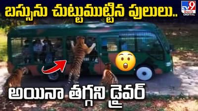 బస్సును చుట్టుముట్టిన పులులు.. అయినా తగ్గని డ్రైవర్